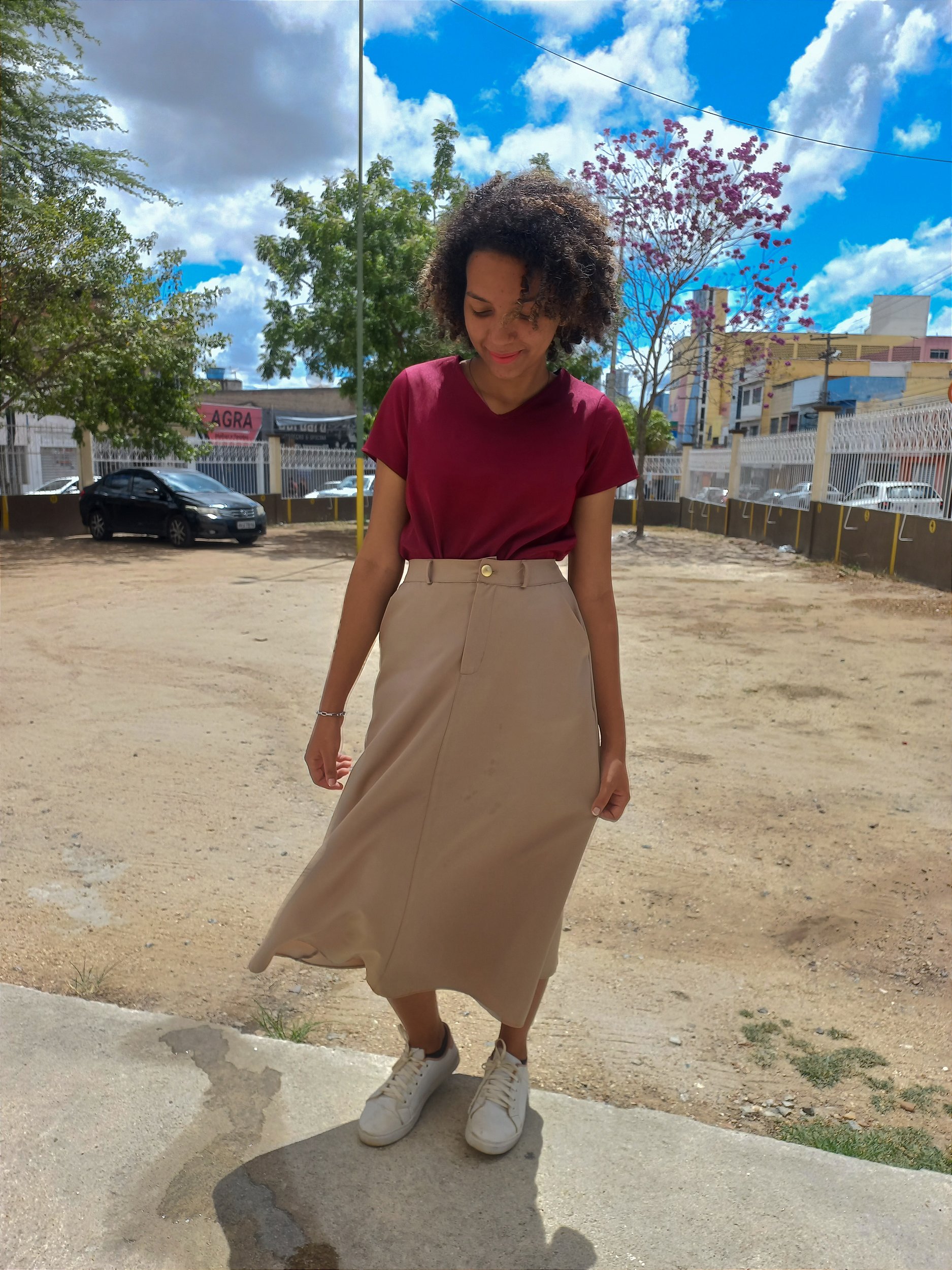 Adicione a Saia Bege ao seu guarda-roupa e sinta-se linda e confiante em qualquer situação!